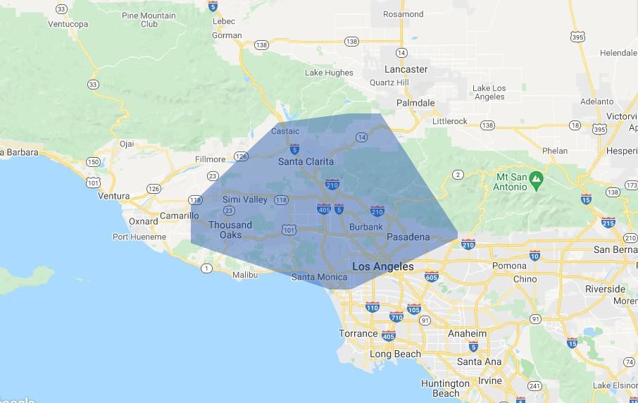 Santa Clarita, Valencia, Stevenson Ranch, Saugus, Canyon Country, Sylmar, San Fernando, Granada Hills, Porter Ranch, Northridge, Van Nuys, Encino, Sherman Oaks, Simi Valley, Moorpark, Thousand Oaks, Oak Park, Westlake Village, Burbank, Glendale, Pasadena, Santa Monica, Culver City and the surrounding areas.